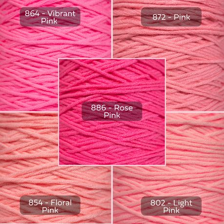 Pink Yarn, 8-ply Tufting Yarn ( 5 x 100g ) , Knitting Yarn
