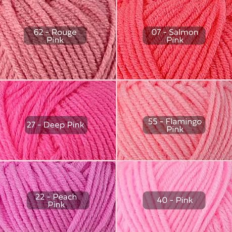 Pink Yarn, 4-ply Tufting Yarn ( 12 x 25g ) , Knitting Yarn