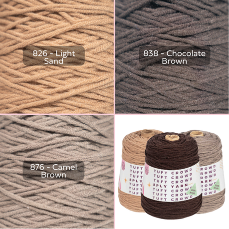 Brown Yarn Single Colour, 8-ply Tufting Yarn, 100% Acrylic Yarn (3x400g)