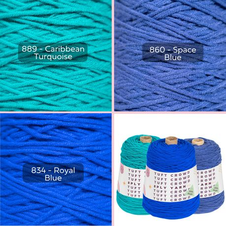 Blue Yarn Single Colour, 8-ply Tufting Yarn, 100% Acrylic Yarn (3x400g)