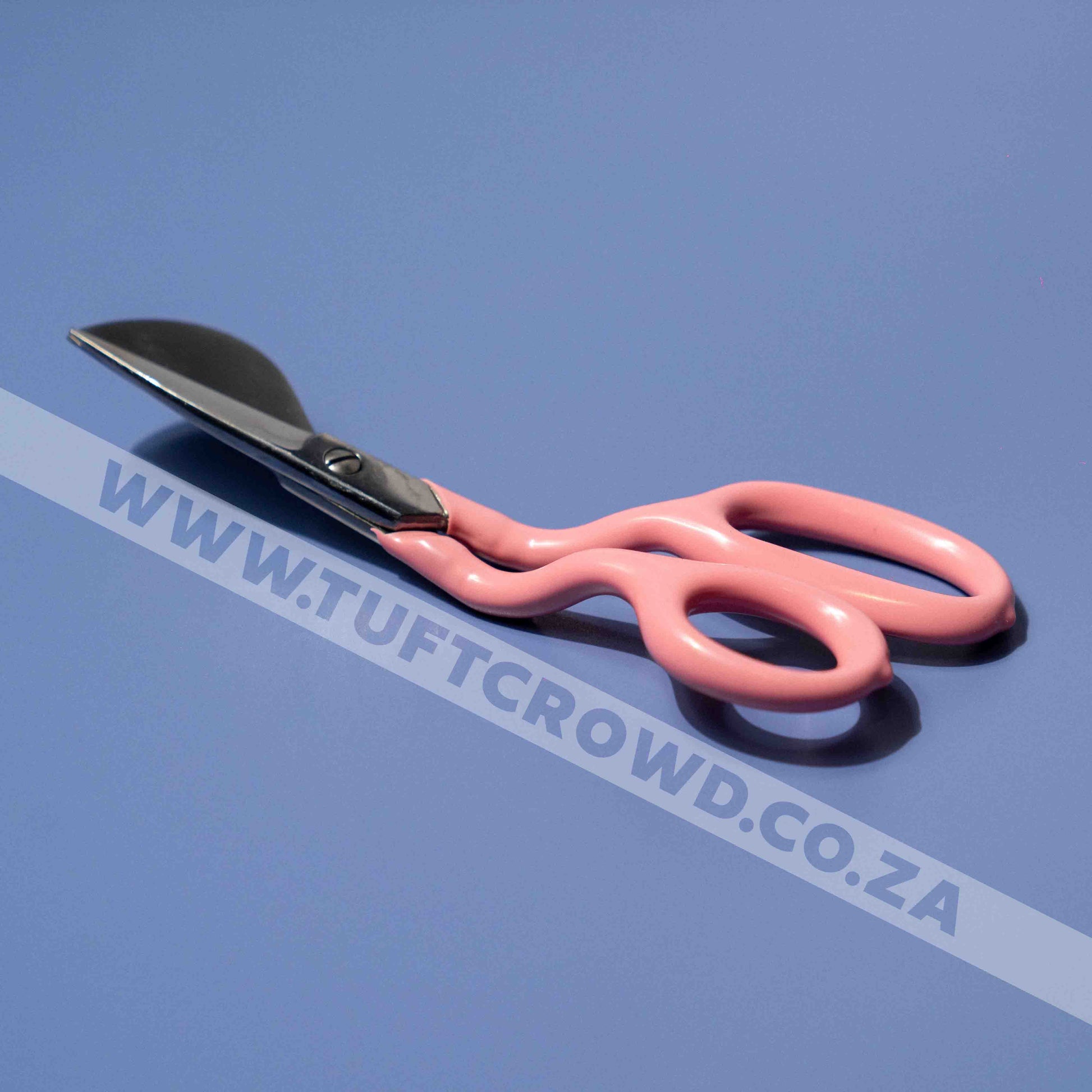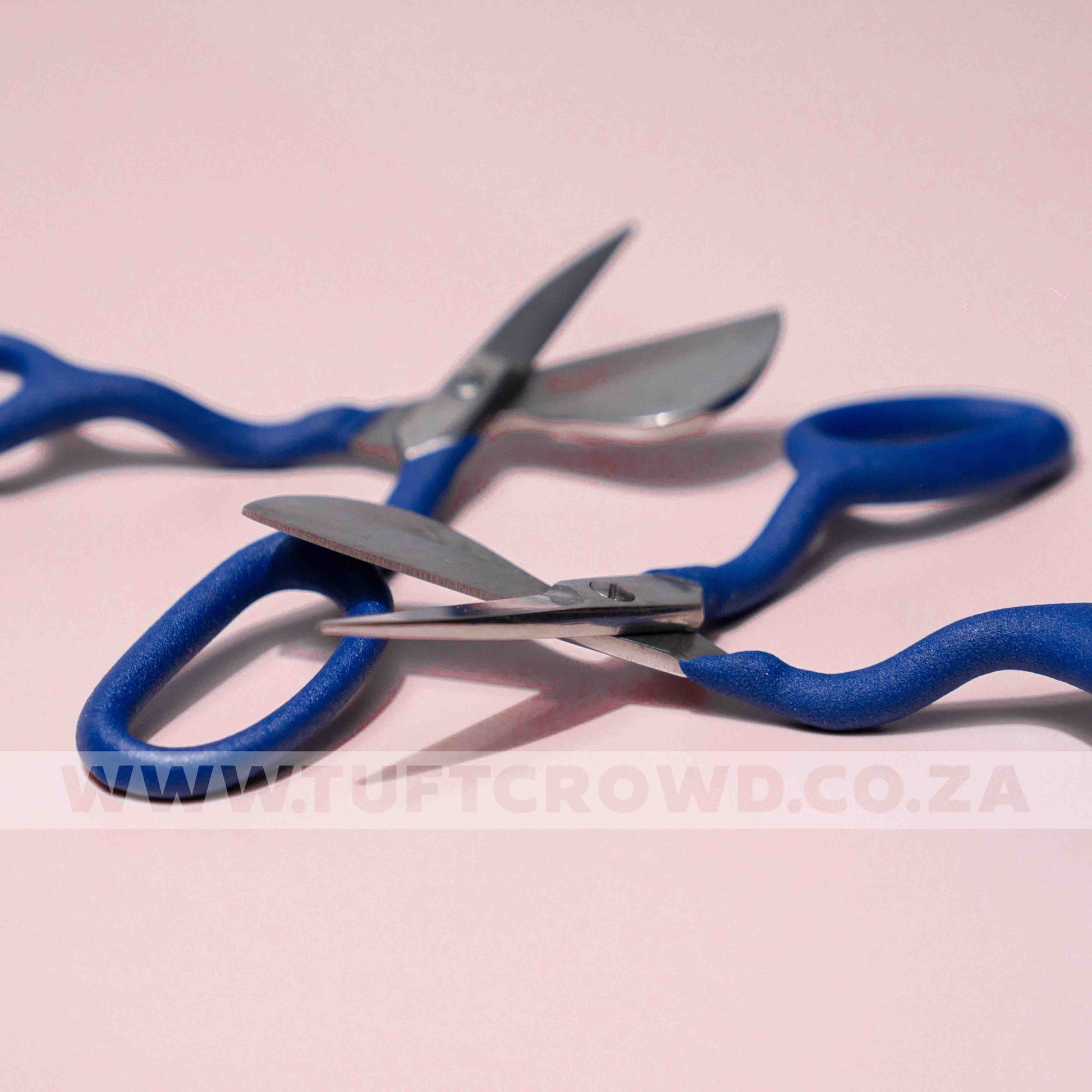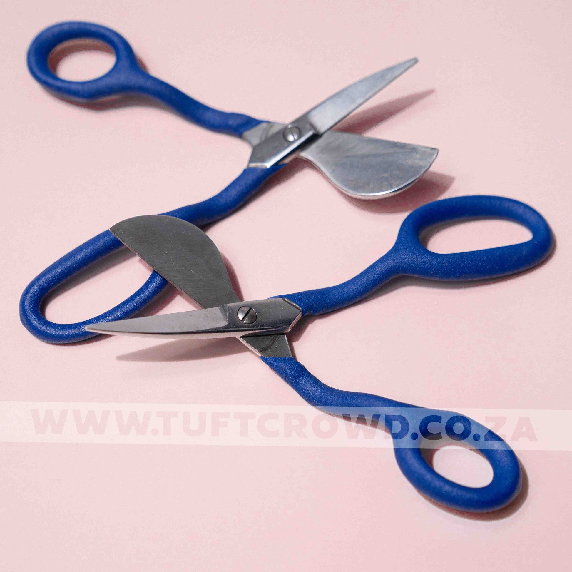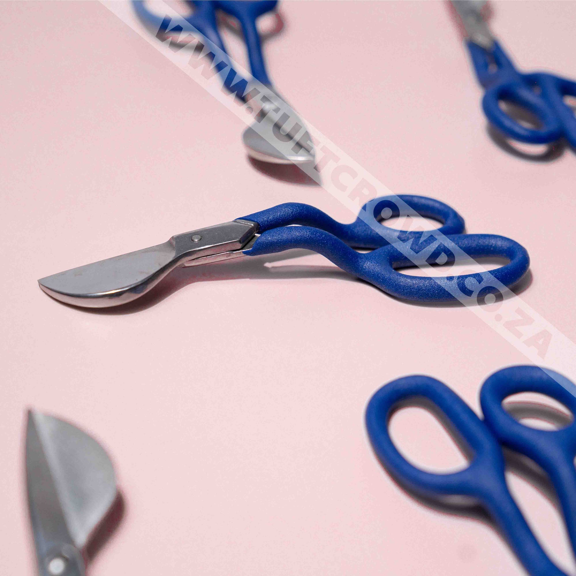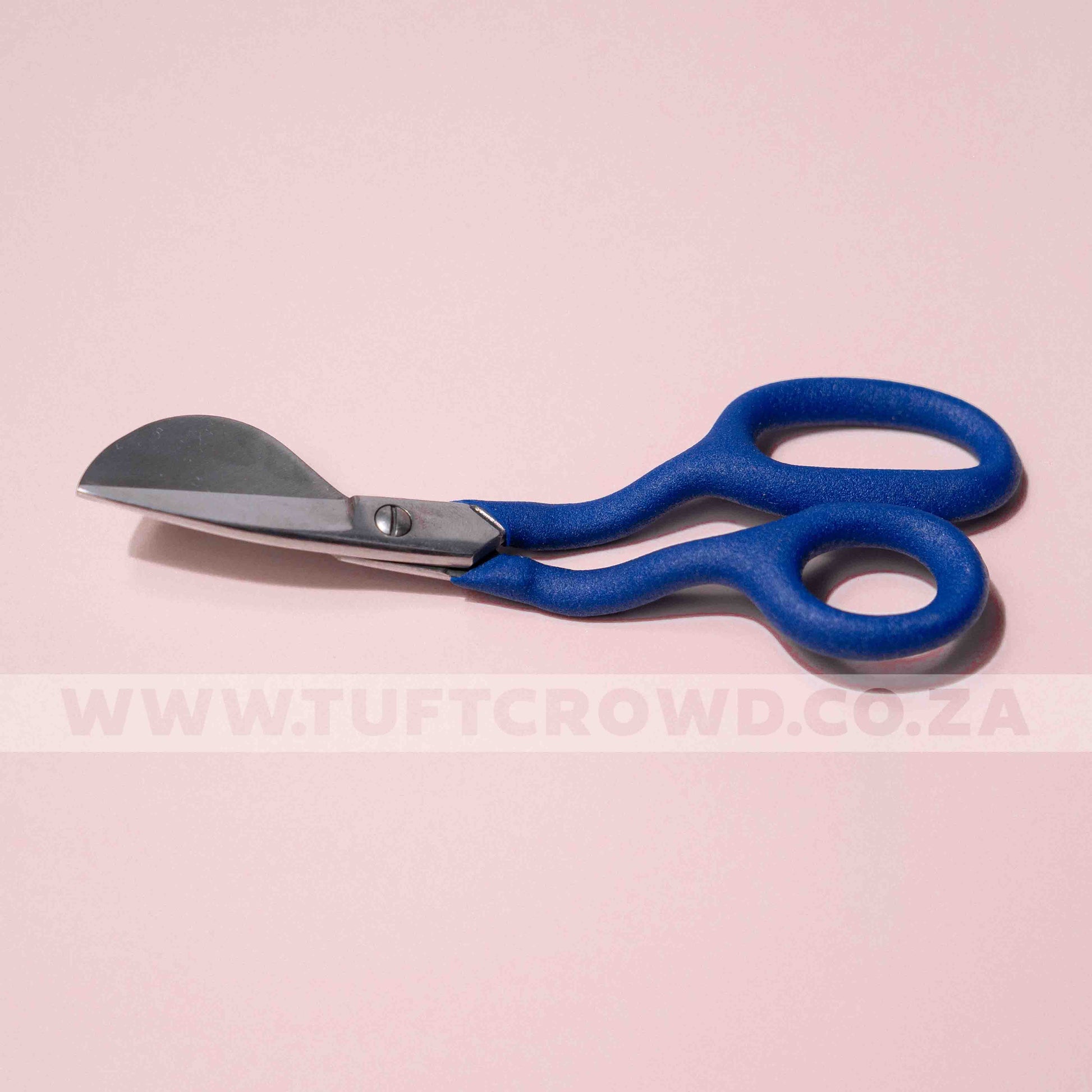 Our duckbill scissors are precision ground cutting blades, the blade lays flat against the floor for even trimming, ideal for trimming rug imperfections and extra yarn, the offset handle prevent gouging when trimming the yarn, the handle is coated with a blue rubber for better grip and comfort.