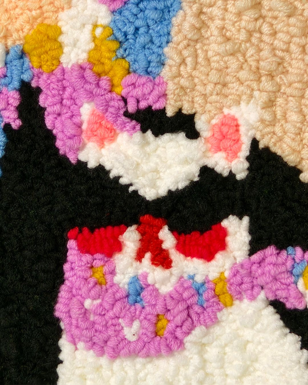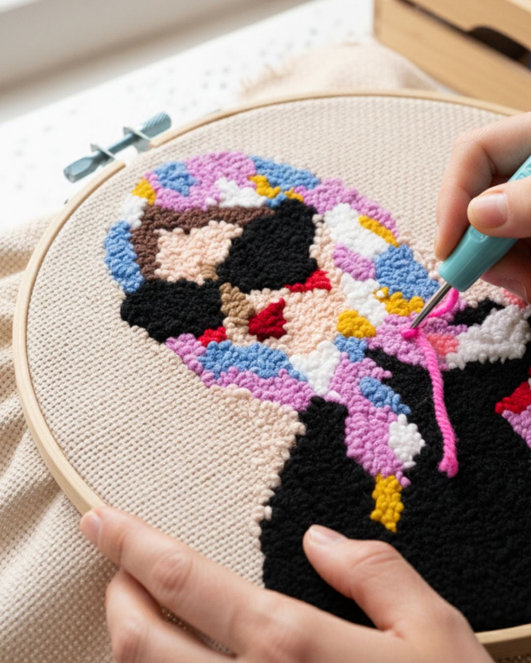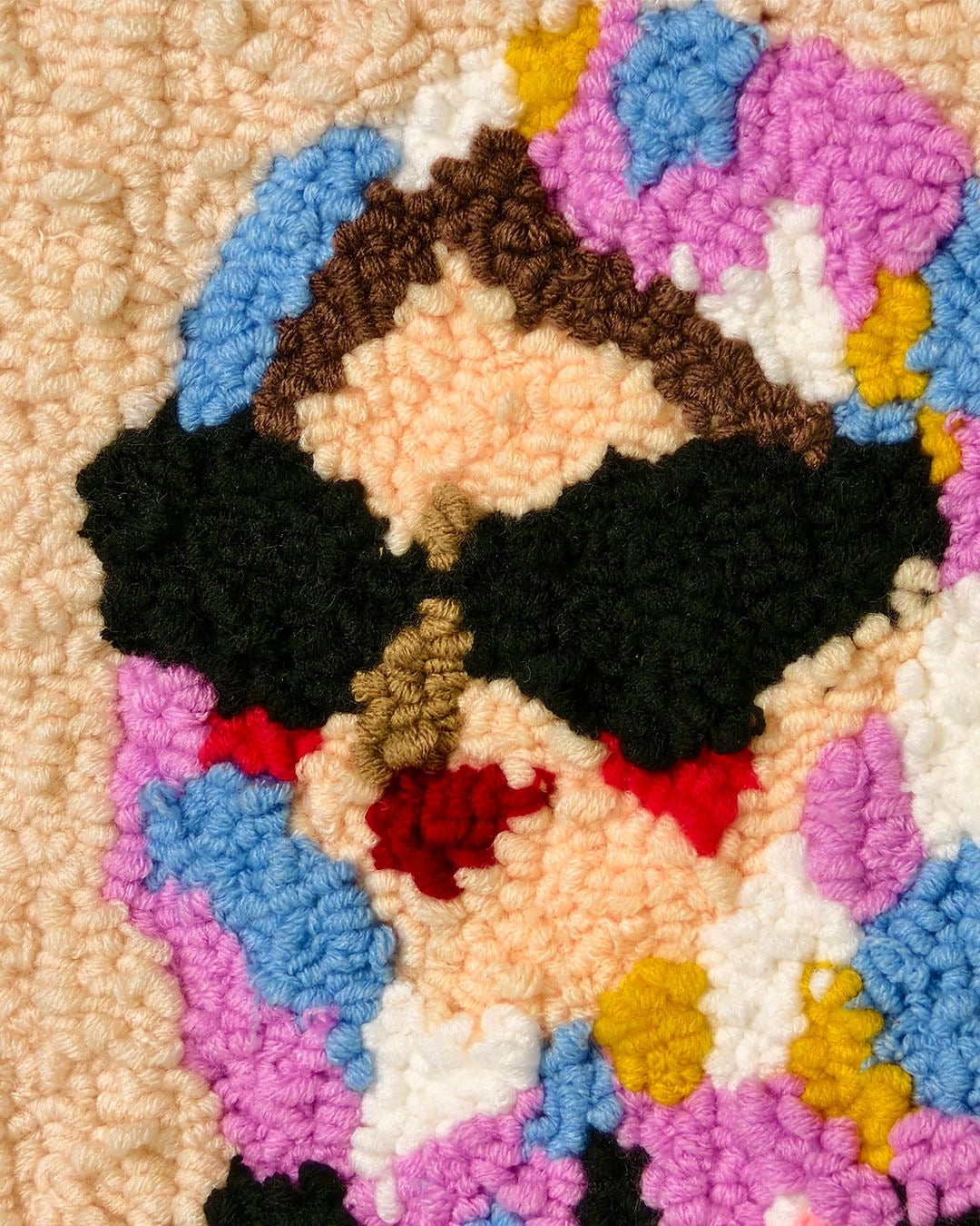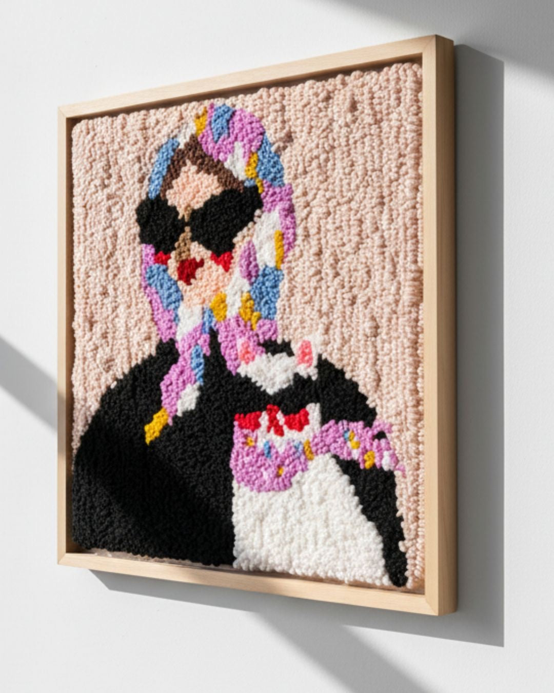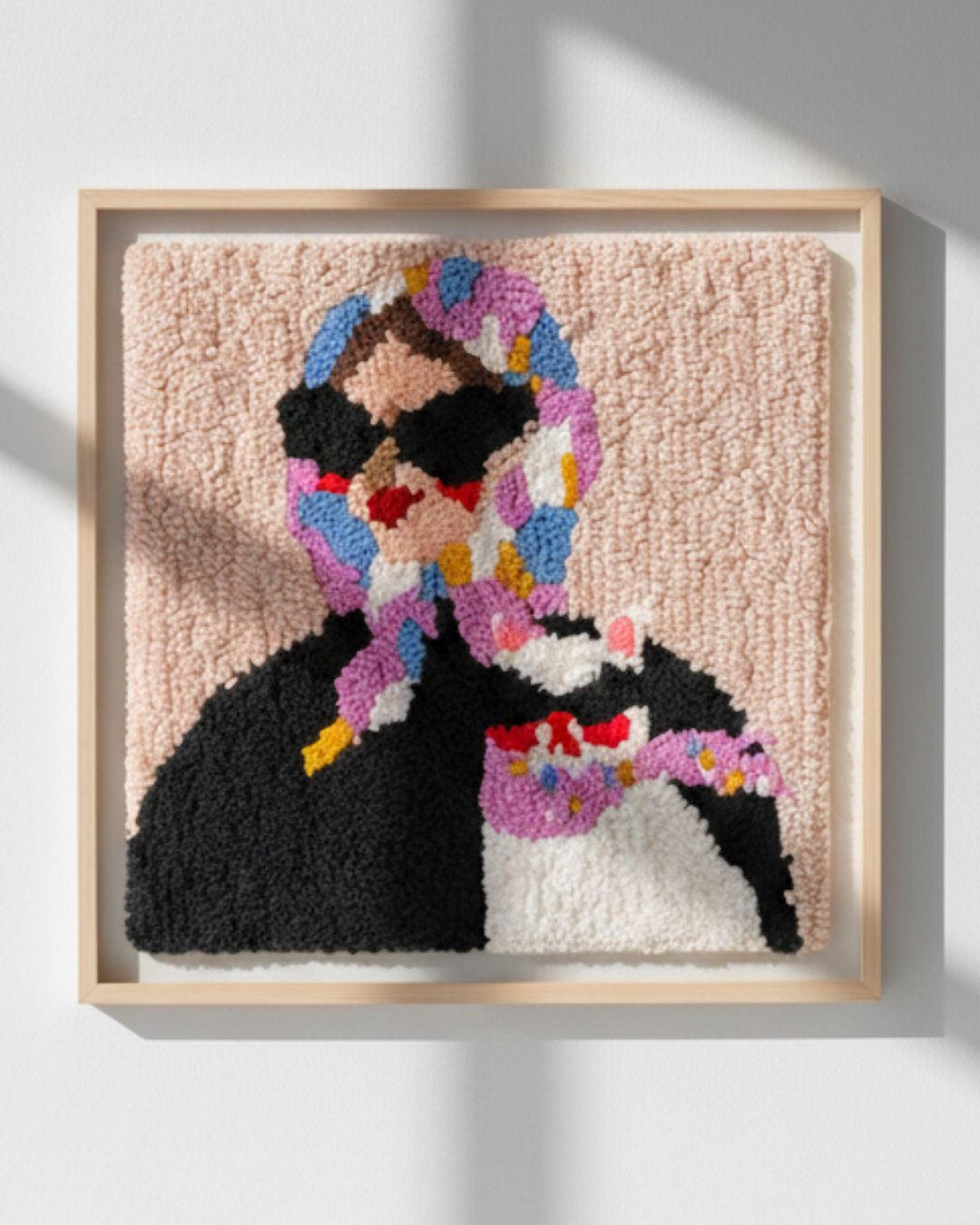A handcrafted punch needle artwork measuring 30 × 30 cm.