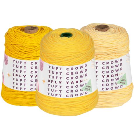 Yellow Yarn, 8-ply Tufting Yarn, Yarn Fiber, 100% Acrylic Yarn (3x400g)